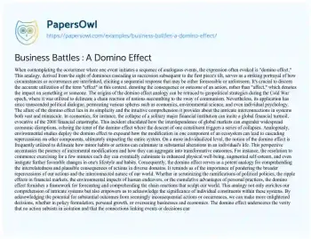 Business Battles : A Domino Effect. (2024, Apr 07). Retrieved from https://hub.papersowl.com/examples/business-battles-a-domino-effect/