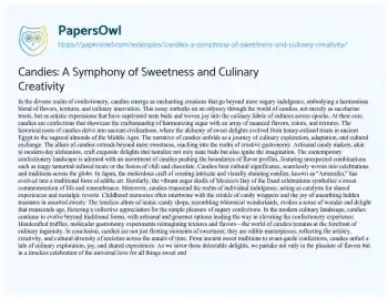 Candies: A Symphony of Sweetness and Culinary Creativity. (2024, Mar 01). Retrieved from https://hub.papersowl.com/examples/candies-a-symphony-of-sweetness-and-culinary-creativity/
