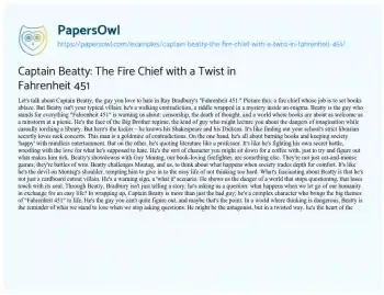 Captain Beatty: The Fire Chief with a Twist in Fahrenheit 451. (2023, Dec 22). Retrieved from https://hub.papersowl.com/examples/captain-beatty-the-fire-chief-with-a-twist-in-fahrenheit-451/
