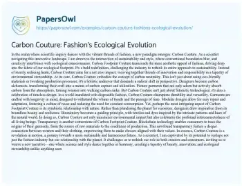 In essence, Carbon Couture is a revolution in motion, a journey towards a more sustainable and harmonious future. As a scientist, I am captivated by its potential to reshape not just the fashion industry but our relationship with the planet. It challenges us to rethink our role as both creators and consumers, inviting us to weave a new narrative—one where science and style dance together in harmony, creating a tapestry of beauty, innovation, and ecological stewardship unlike anything seen before.