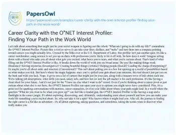 Career Clarity with the O*NET Interest Profiler: Finding Your Path in the Work World. (2024, Mar 01). Retrieved from https://hub.papersowl.com/examples/career-clarity-with-the-onet-interest-profiler-finding-your-path-in-the-work-world/