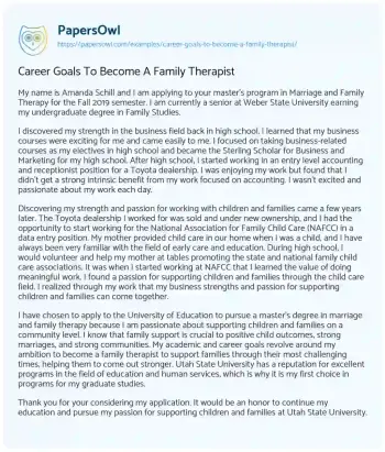Career Goals To Become A Family Therapist. (2022, Jun 20). Retrieved from https://hub.papersowl.com/examples/career-goals-to-become-a-family-therapist/