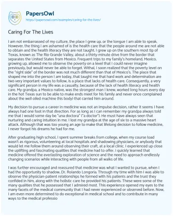 Caring For The Lives. (2022, Jun 27). Retrieved from https://hub.papersowl.com/examples/caring-for-the-lives/