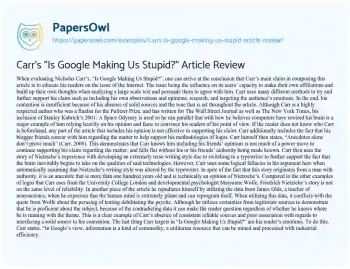 Carr’s “Is Google Making Us Stupid?” Article Review. (2021, Apr 24). Retrieved from https://hub.papersowl.com/examples/carrs-is-google-making-us-stupid-article-review/