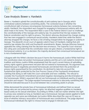 Case Analysis: Bower v. Hardwick. (2021, May 17). Retrieved from https://hub.papersowl.com/examples/case-analysis-bower-v-hardwick/