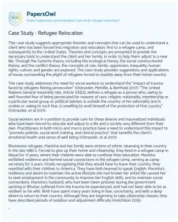 Case Study - Refugee Relocation. (2021, May 29). Retrieved from https://hub.papersowl.com/examples/case-study-refugee-relocation/