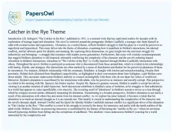J.D. Salinger's "The Catcher in the Rye," published in 1951, is a seminal work that has captivated readers for decades with its exploration of teenage angst and alienation. The novel is centered around the protagonist, Holden Caulfield, a teenager who finds himself at odds with societal norms and expectations. Alienation, as a central theme, reflects Holden's struggle to find his place in a world he perceives as superficial and hypocritical. This essay delves into the theme of alienation, examining how it manifests in Holden's interactions, his internal conflicts, and his ultimate quest for identity and meaning.