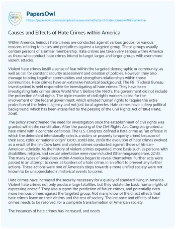 Causes and Effects of Hate Crimes within America. (2020, Aug 25). Retrieved from https://hub.papersowl.com/examples/causes-and-effects-of-hate-crimes-within-america/