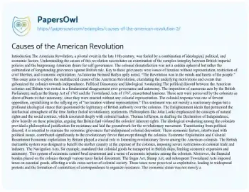 Causes of the American Revolution. (2024, Dec 27). Retrieved from https://hub.papersowl.com/examples/causes-of-the-american-revolution-2/