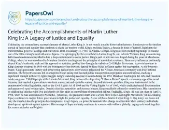 Order now King's path to activism was forged during his years at Morehouse College, where he was introduced to Mahatma Gandhi's teachings and the principles of nonviolent resistance. These early influences profoundly shaped King's leadership style and his approach to activism, guiding him through the turbulent Civil Rights Movement.