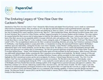 The Enduring Legacy of "One Flew Over the Cuckoo's Nest". (2024, Jul 06). Retrieved from https://hub.papersowl.com/examples/celebrating-the-awards-of-one-flew-over-the-cuckoos-nest/