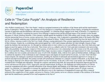 Celie in "The Color Purple": An Analysis of Resilience and Redemption. (2024, Mar 01). Retrieved from https://hub.papersowl.com/examples/celie-in-the-color-purple-an-analysis-of-resilience-and-redemption/