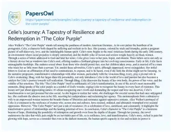 Celie's Journey: A Tapestry of Resilience and Redemption in "The Color Purple". (2023, Oct 16). Retrieved from https://hub.papersowl.com/examples/celies-journey-a-tapestry-of-resilience-and-redemption-in-the-color-purple/