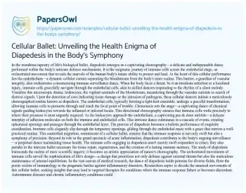 Cellular Ballet: Unveiling the Health Enigma of Diapedesis in the Body's Symphony. (2024, Jan 16). Retrieved from https://hub.papersowl.com/examples/cellular-ballet-unveiling-the-health-enigma-of-diapedesis-in-the-bodys-symphony/