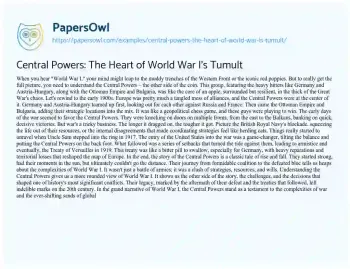 This essay takes a deep dive into the role and impact of the Central Powers during World War I, offering a comprehensive look at the other side of the conflict. It introduces the Central Powers, primarily Germany, Austria-Hungary, the Ottoman Empire, and Bulgaria, as key players in the early 20th-century geopolitical landscape. The piece vividly describes their initial strategic successes and the challenges they faced, including the British naval blockade and internal conflicts. The essay highlights the turning point in the war with the entry of the United States, leading to the eventual downfall of the Central Powers. It discusses the significant repercussions of their defeat, particularly in the Treaty of Versailles, which imposed harsh penalties and territorial losses, reshaping Europe’s map. The narrative captures the complexities of World War I, portraying the Central Powers as more than just adversaries but as integral participants whose actions and eventual defeat had profound implications on global history. The essay offers an engaging perspective on the Central Powers, emphasizing their crucial role in the broader context of the war and its lasting legacy. Moreover, at PapersOwl, there are additional free essay samples connected to World War 1.