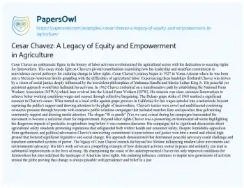 Cesar Chavez: A Legacy of Equity and Empowerment in Agriculture. (2024, Jul 06). Retrieved from https://hub.papersowl.com/examples/cesar-chavez-a-legacy-of-equity-and-empowerment-in-agriculture/