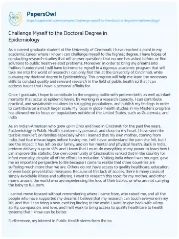 Challenge Myself to the Doctoral Degree in Epidemiology. (2021, Oct 15). Retrieved from https://hub.papersowl.com/examples/challenge-myself-to-the-doctoral-degree-in-epidemiology/