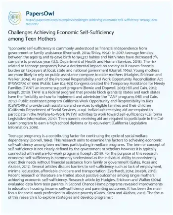 Challenges Achieving Economic Self-Sufficiency among Teen Mothers. (2021, Jun 17). Retrieved from https://hub.papersowl.com/examples/challenges-achieving-economic-self-sufficiency-among-teen-mothers/