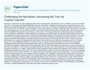 Challenging the Narratives: Uncovering the "Lies My Teacher Told Me". (2023, Dec 04). Retrieved from https://hub.papersowl.com/examples/challenging-the-narratives-uncovering-the-lies-my-teacher-told-me/