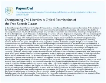 Championing Civil Liberties: A Critical Examination of the Free Speech Clause
