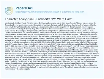Character Analysis in E. Lockhart's "We Were Liars". (2024, Sep 17). Retrieved from https://hub.papersowl.com/examples/character-analysis-in-e-lockharts-we-were-liars/