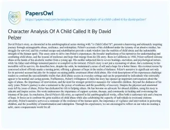 Character Analysis Of A Child Called It By David Pelzer. (2024, Apr 14). Retrieved from https://hub.papersowl.com/examples/character-analysis-of-a-child-called-it-by-david-pelzer/