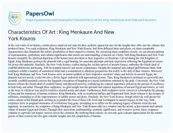 Characteristics Of Art : King Menkaure And New York Kouros. (2024, Apr 07). Retrieved from https://hub.papersowl.com/examples/characteristics-of-art-king-menkaure-and-new-york-kouros/