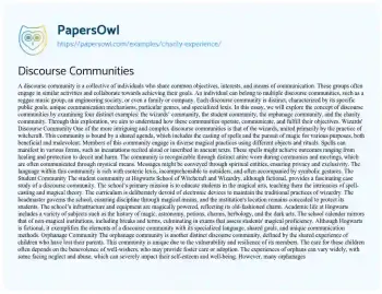 Discourse Communities. (2021, Apr 28). Retrieved from https://hub.papersowl.com/examples/charity-experience/