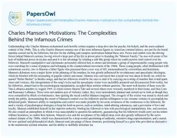 Charles Manson's Motivations: The Complexities Behind the Infamous Crimes. (2024, Jun 28). Retrieved from https://hub.papersowl.com/examples/charles-mansons-motivations-the-complexities-behind-the-infamous-crimes/
