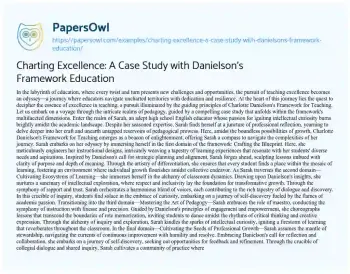 As Sarah's odyssey unfolds, she discovers that the pursuit of teaching excellence is not a destination but a voyage—a journey of self-discovery and growth fueled by the unwavering commitment to inspire, empower, and transform. In the crucible of her classroom, amidst the tapestry of learning, she finds solace in the knowledge that her journey is not solitary but shared—a testament to the enduring power of Charlotte Danielson's Framework for Teaching to illuminate paths and forge futures.