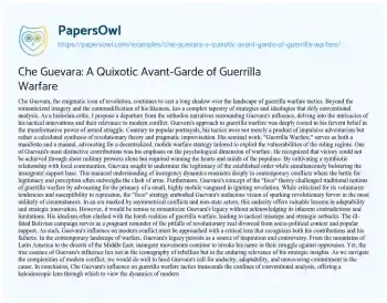 Che Guevara: A Quixotic Avant-Garde of Guerrilla Warfare. (2024, Mar 01). Retrieved from https://hub.papersowl.com/examples/che-guevara-a-quixotic-avant-garde-of-guerrilla-warfare/