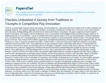 Checkers Unleashed: A Journey from Traditions to Triumphs in Competitive Play Innovation. (2023, Nov 24). Retrieved from https://hub.papersowl.com/examples/checkers-unleashed-a-journey-from-traditions-to-triumphs-in-competitive-play-innovation/