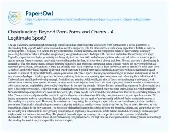 Cheerleading: Beyond Pom-Poms and Chants - A Legitimate Sport?. (2023, Oct 10). Retrieved from https://hub.papersowl.com/examples/cheerleading-beyond-pom-poms-and-chants-a-legitimate-sport/