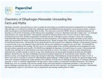 Chemistry of Dihydrogen Monoxide: Unraveling the Facts and Myths. (2024, Jan 09). Retrieved from https://hub.papersowl.com/examples/chemistry-of-dihydrogen-monoxide-unraveling-the-facts-and-myths/