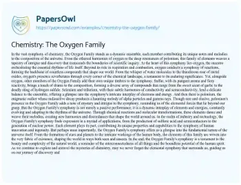 Chemistry: The Oxygen Family. (2024, Apr 29). Retrieved from https://hub.papersowl.com/examples/chemistry-the-oxygen-family/