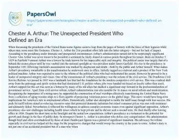 Chester A. Arthur: The Unexpected President Who Defined an Era. (2024, Jul 06). Retrieved from https://hub.papersowl.com/examples/chester-a-arthur-the-unexpected-president-who-defined-an-era/
