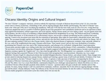 Chicano Identity: Origins and Cultural Impact. (2024, May 12). Retrieved from https://hub.papersowl.com/examples/chicano-identity-origins-and-cultural-impact/