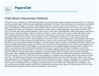 Child Abuse Intervention Methods. (2019, Feb 25). Retrieved from https://hub.papersowl.com/examples/child-abuse-means-a-physical-maltreatment/