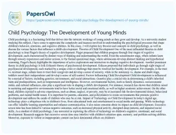 Child Psychology: The Development of Young Minds. (2025, Oct 20). Retrieved from https://hub.papersowl.com/examples/child-psychology-the-development-of-young-minds/