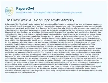 The Glass Castle: A Tale of Hope Amidst Adversity. (2021, May 27). Retrieved from https://hub.papersowl.com/examples/childhood-in-jeannette-walls-glass-castle/