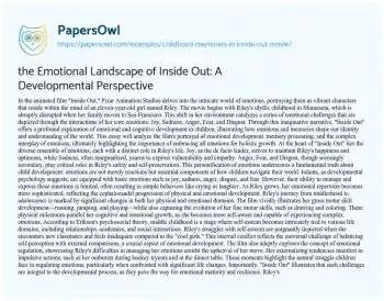 the Emotional Landscape of Inside Out: A Developmental Perspective. (2021, Oct 18). Retrieved from https://hub.papersowl.com/examples/childhood-memories-in-inside-out-movie/