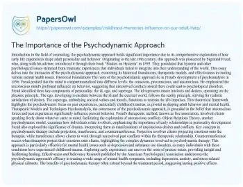 The Importance of the Psychodynamic Approach. (2021, Oct 18). Retrieved from https://hub.papersowl.com/examples/childhood-memories-influence-on-our-adult-lives/