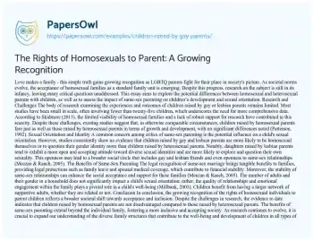 The Rights of Homosexuals to Parent: A Growing Recognition. (2021, Apr 10). Retrieved from https://hub.papersowl.com/examples/children-raised-by-gay-parents/