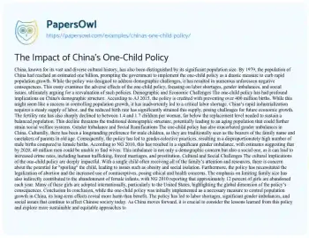 The Impact of China's One-Child Policy. (2020, Mar 15). Retrieved from https://hub.papersowl.com/examples/chinas-one-child-policy/
