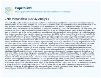 Chris Mccandless Bus 142 Analysis. (2024, Apr 14). Retrieved from https://hub.papersowl.com/examples/chris-mccandless-bus-142-analysis/