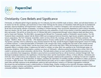 Christianity: Core Beliefs and Significance. (2024, Jun 01). Retrieved from https://hub.papersowl.com/examples/christianity-core-beliefs-and-significance/