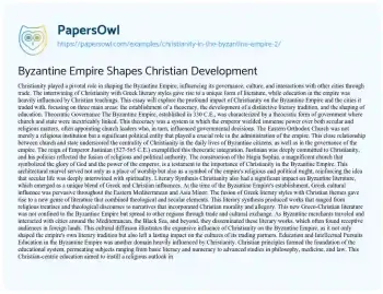 Byzantine Empire Shapes Christian Development. (2020, Mar 28). Retrieved from https://hub.papersowl.com/examples/christianity-in-the-byzantine-empire-2/