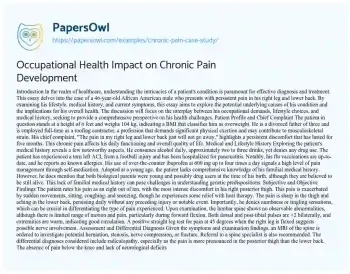 Occupational Health Impact on Chronic Pain Development. (2020, Mar 30). Retrieved from https://hub.papersowl.com/examples/chronic-pain-case-study/