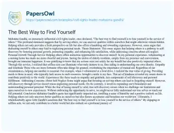 Mahatma Gandhi's quote has significantly impacted me, instilling a sense of humility and a positive outlook on life. Helping others not only uncovers better qualities in ourselves but also fosters acceptance and broadens our worldview. Ultimately, I wholeheartedly agree with Gandhi's assertion that "the best way to find yourself is to lose yourself in the service of others." By engaging in selfless acts, we not only contribute to a better world but also embark on a profound journey of self-discovery.