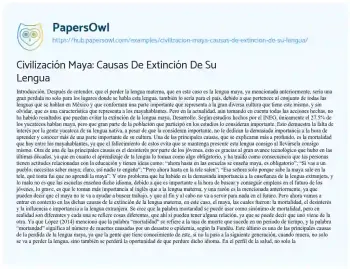 Civilización Maya: Causas De Extinción De Su Lengua. (2026, Feb 06). Retrieved from https://hub.papersowl.com/examples/civilizacion-maya-causas-de-extincion-de-su-lengua/